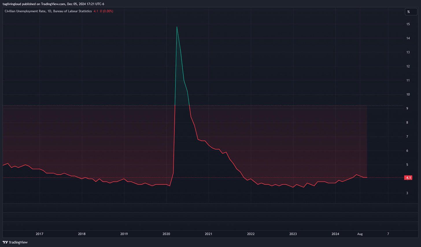 Despite the expected job growth, the unemployment rate is predicted to hold steady at 4.1%, remaining near 50-year lows. Wage growth is forecast to moderate slightly, with hourly earnings expected to increase by 0.3%, down from October's 0.4% rise.